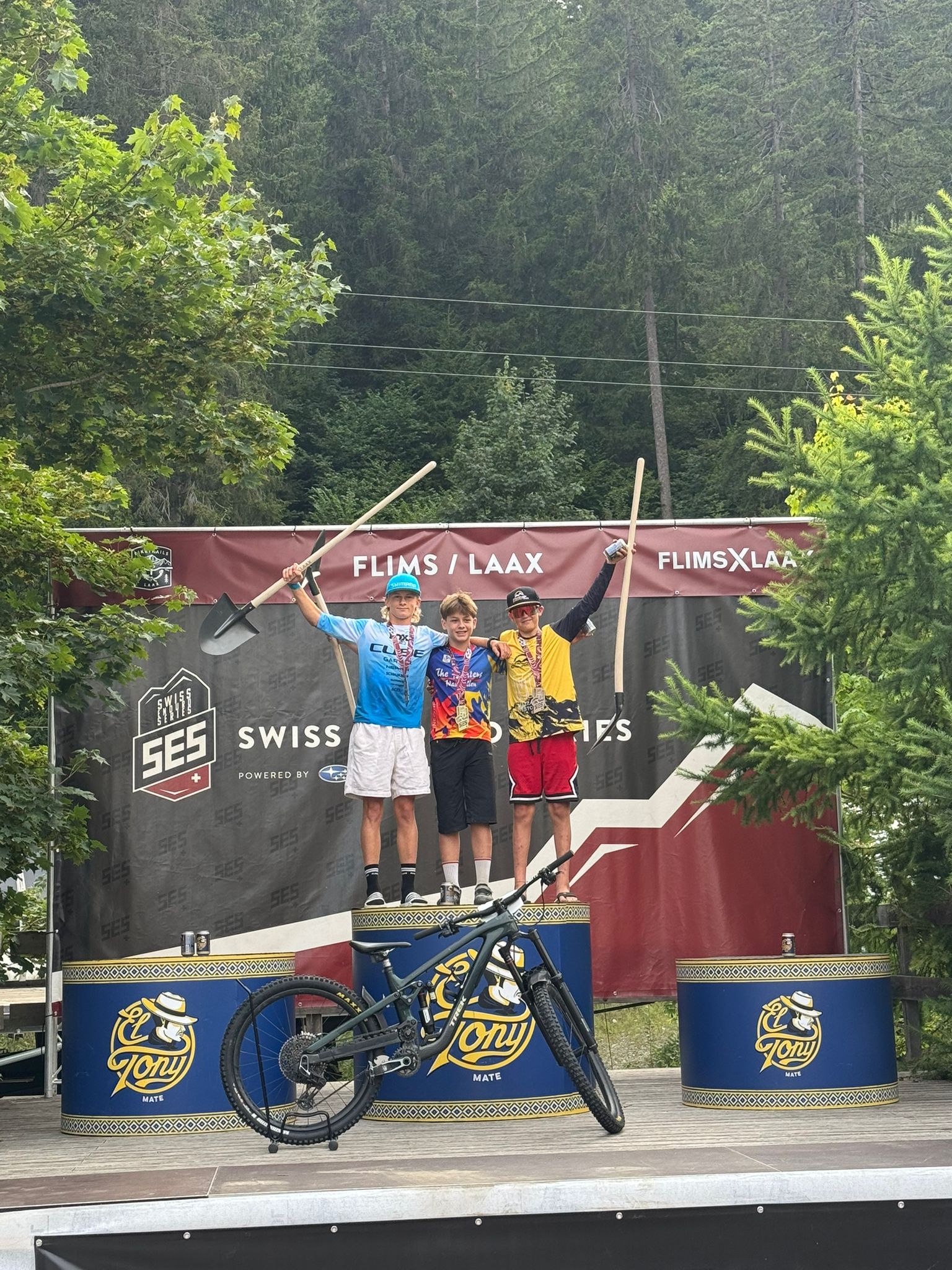 At Round 3 of the Swiss Enduro Series in Flims/Laax, our young teammate Maxi proved he’s one to watch. The course featured four demanding stages across alpine terrain, from glaciers down to the Rhine valley – a true test of skill, stamina and race focus.